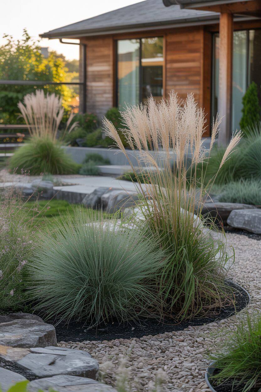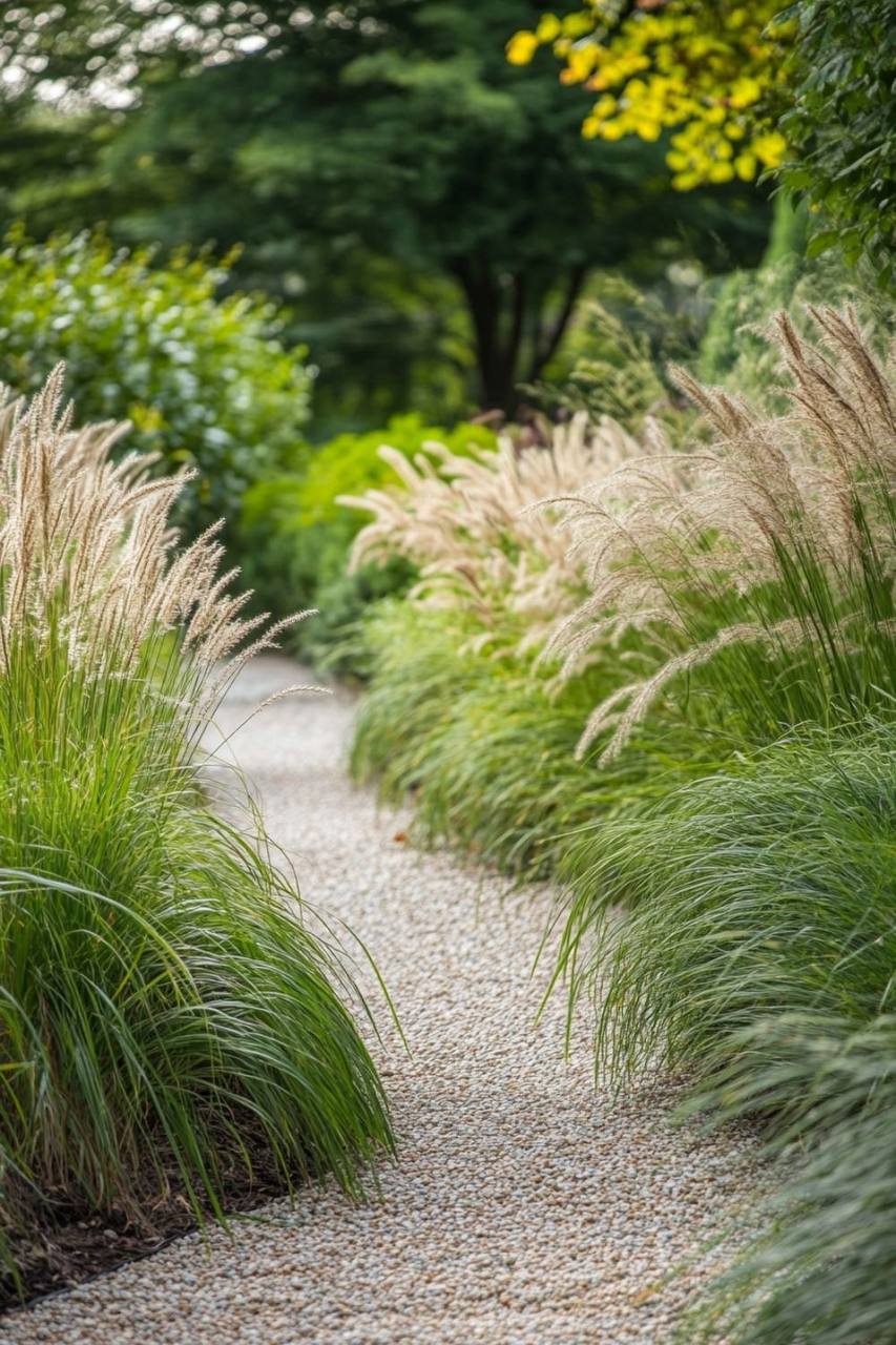 У садах з мінімальним доглядом злаки фактично замінюють традиційні елементи: складні квітники, бордюри вздовж доріжок і навіть частину газону. Саме тут вони розкривають свій потенціал як функціональний елемент, а не просто декор.